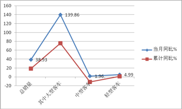 3、 中型客车1-2月累计销量同比增长257.4%,是增长幅度最大的细分车型,