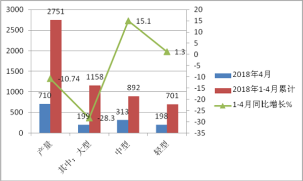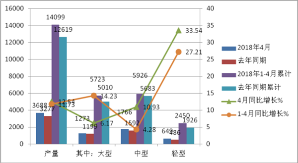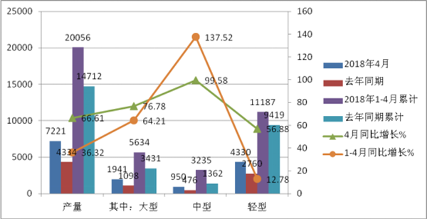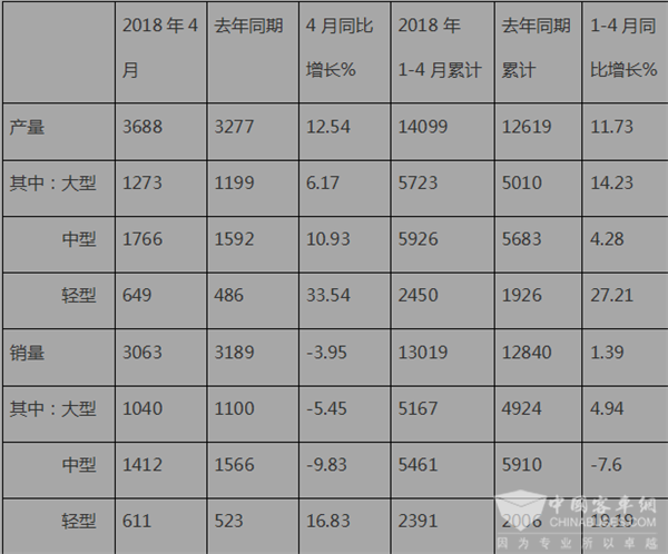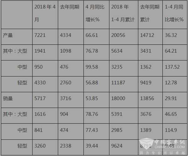 根据中通客车5月7日发布的最新公告,2018年4月及1-4月产销数据如下: