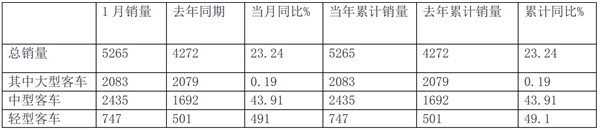 一、 宇通客车1月销量点评——销量同比增幅较大,实现2019年“开门红”,中轻型客车同比增幅均超四成
