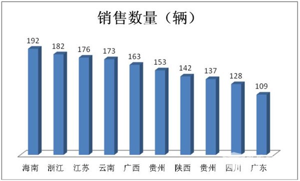 4、 海南区域竞争最不充分,而江苏、广西、陕西等区域是旅游客车竞争比较充分的市场,这给客车制造企业在制定旅游客车市场的营销策略方面提供了主要依据。