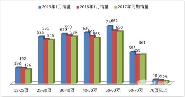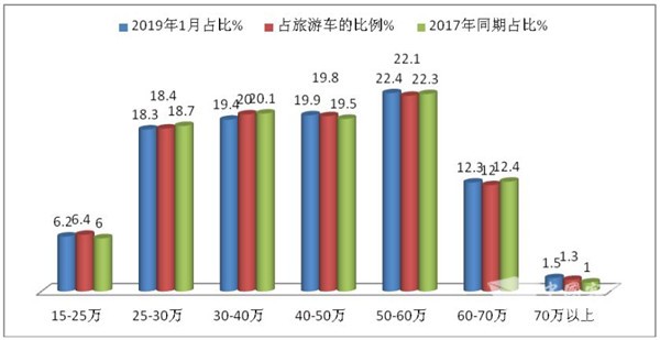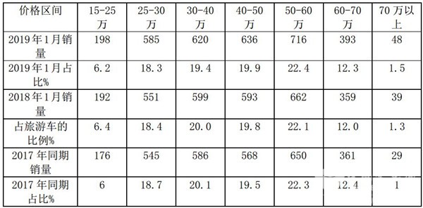 2019年1月旅游客车按价格划分销量统计表