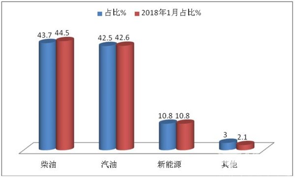 1、 柴油销量占比最大,但同比下降0.8个百分点。
