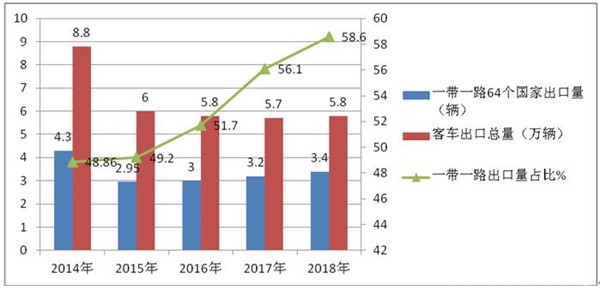 根据海关数据统计,近年我国各类客车出口“一带一路”国家数量占比%