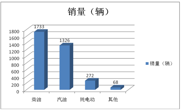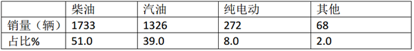 根据数据统计,2019年一季度销售3399辆考斯特客车中,按搭载的燃料动力种类划分销量结构: