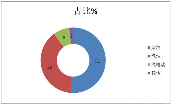 可见,在2019年一季度考斯特客车销量结构中,柴油占比达到51%,超半壁江山,为最大;其次是汽油占比为39%;再次是纯电动年占比为8%。