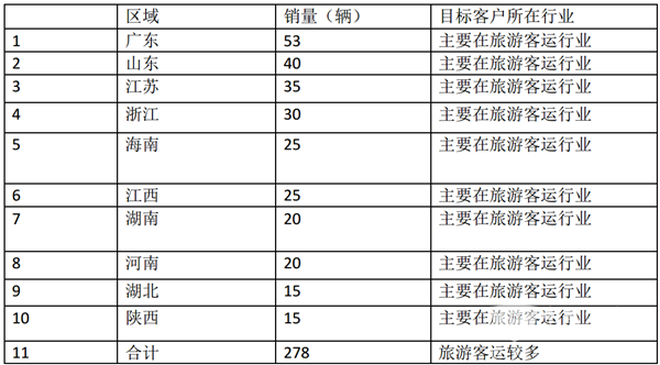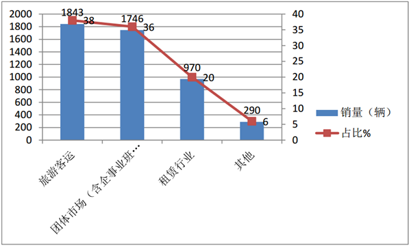 可见,考斯特客车在旅游客运领域占比最高,其次是团体班车市场,再次是租赁行业。