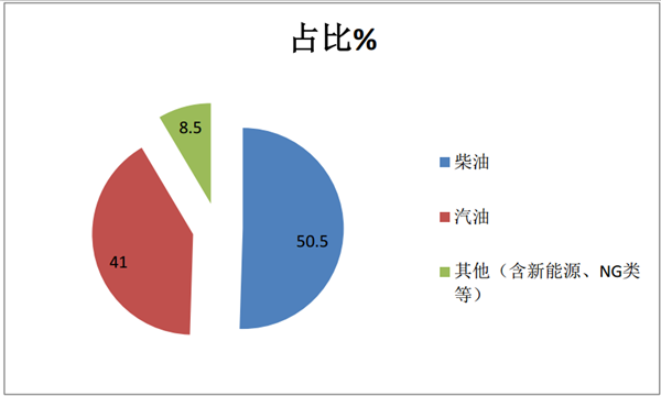 四、按动力种类划分6米长度段考斯特客车销量结构,柴油超半壁江山,为最大;汽车是汽油