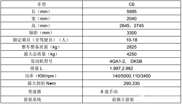 六、6米小型高一级(18座)考斯特客车主要竞品配置参数简析:
