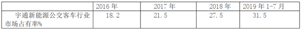 新能源客车行业的领军企业宇通,目前已经形成了6—18米公交客车产品系列全面,竞争力强,宇通新能源公交客车及新能源公路客车市场占有率一直位居行业第一,且呈现逐年上升态势(见下表)