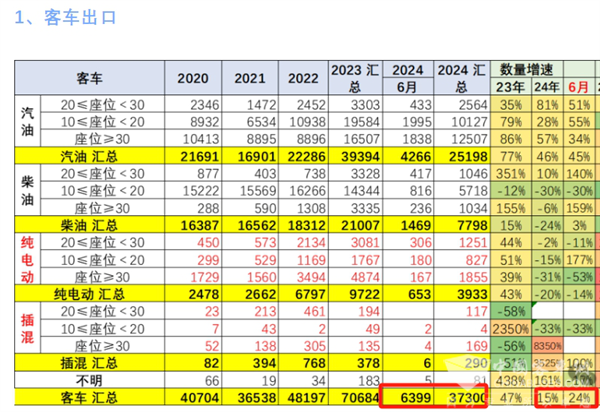 中国汽车流通协会据显示, 2024年上半年我国客车累计出口3.73万辆,同比增长15%,跑赢今年上半年客车大盘10%的增速5个百分点。
