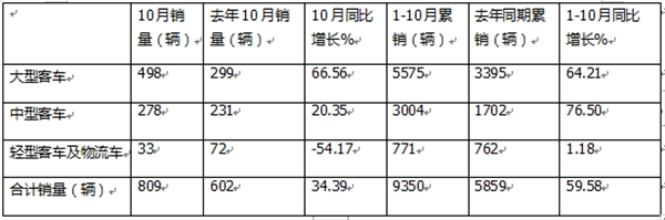 三、 中通客车:10月销量同比增长34.39%;1-10月累销同比增长59.58%