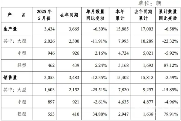 近日,金龙汽车发布了2025年5月份产销数据快报。