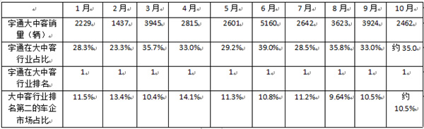 综上所述,尽管宇通客车10月销量受季节性波动及“双节“长假影响而趋于企稳状态,但特点依然不少,其中上述5个较为突出。