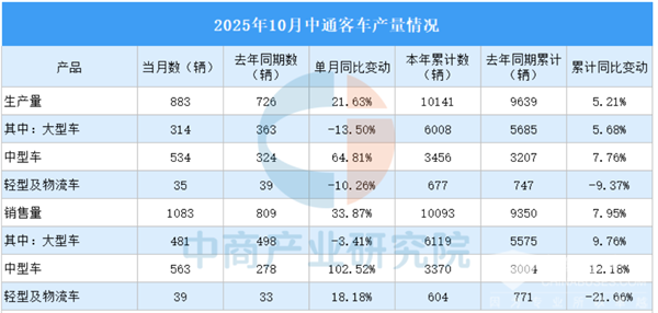 上图表可见,2025年10月中通中型客车销量563辆,同比翻倍大涨(102.52%),跑赢且领涨其今年10月整体销量同比33.87%的增速近68.65个百分点;表现抢眼。据分析主要得益于: