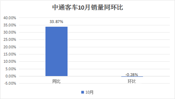 ---尽管本月销量环比基本持平,要知道这是相对“金九”旺季销量而言的。况且10月份由于国庆、中秋“双节”长假耽误,实际上本月工作日相对上月较少,在这种客观情况下中通客车10月销量环比仍能实现基本持平,应该说是相当不易。