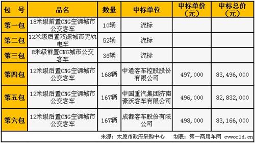 太原公开采购335辆新能源客车结果公示