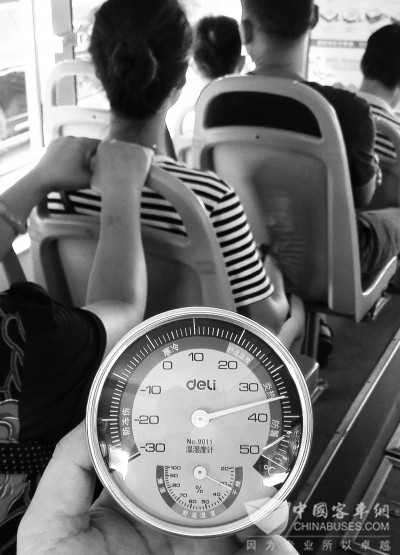 2016年7月25日中午2点多,记者携带温度计坐上604A路空调车。该线路负责人介绍,全线路是更换不久的新车,车窗为出厂标配深茶色防晒玻璃,且窗帘安装齐备。记者在车内确实感到清凉舒适。