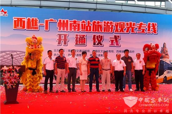 上午11时,南海区文化体育局局长、南海区旅游局局长梁惠颜、南海区交通运输局局长张江、区交通运输局副局长孔小虎、区交通运输局副局长邝泽亨、西樵镇党委书记黄颂华、副镇长冼留胜、西樵镇党委委员梁颖豪、佛广集团总经理王军出席旅游专线的开通仪式。