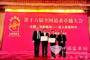2016年11月10日,全国第十六届追求卓越大会在北京举行。凭借卓越的经营绩效水平、显著的品牌文化竞争力和质量管理方面的突出表现,来自岛城的公交企业——交运温馨巴士荣膺2016年度“全国质量奖管理特色奖”、“全国实施卓越绩效模式先进企业”两项大奖。