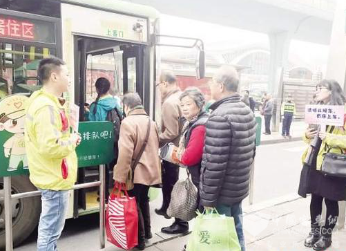 前日,当记者再次来到梧村车站时,记者看到,梧村车站的乘车环境明显已有改善,公交车能有序进出站,在志愿者的引导下,市民基本能按序排队上车。