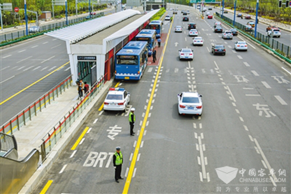 首次上路的快速公交停靠在锡林郭勒路站