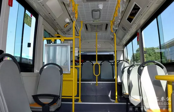 在停车场,65辆安凯新能源公交车整齐停放着,它们长度为6.5米,整体采用了蓝白相间的“小清新”配色,靓丽外形让人眼前一亮。走进车厢,车内空间宽敞明亮,整洁无异味,乘坐起来几乎听不到电动机的声响,而且是冷暖空调车,为乘客带来的是地铁般舒适的感受。