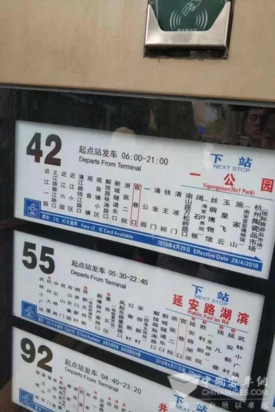 2018年11月19日在42路启用的该系统具备“实时报站、重复提醒”语音引导功能,通过智能芯片分析前车门状态,车门开启时触发专属报站语音:“欢迎乘坐开往近江一园(杭州陶瓷品市场)的42路公交”,重复播报两遍。