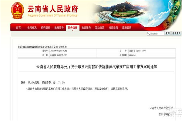 《云南省加快新能源汽车推广应用工作方案》指出,各地政府要积极从市政用车和政府主导的出租、公交等公共交通体系入手开始推进,进而有了昆明的这一规定。