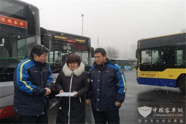 2月12日早高峰,随着降雪到来,公交集团启动了雪天应急预案,全系统2000余名应急指挥和保障人员到全市重点桥区、高速公路巡查路况,在危险或重点路段设置安全岗。各条线路的安全、运营专业人员现场调度车辆、叮嘱安全,保障雪天各项措施落实到位。50余部公交抢修救援车部署在全市各枢纽站和重点线路、立交桥区;保修系统出动500余人的抢修小分队,分赴各公交场站和重点地区,全力做好技术保障。