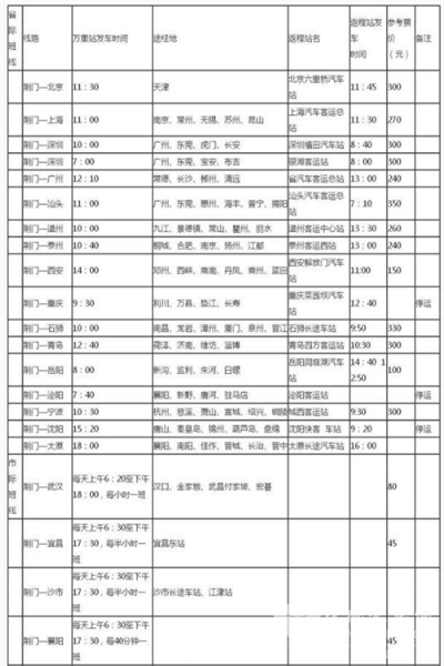 湖北荆门:客运南北站公交线路、客运班次表曝光