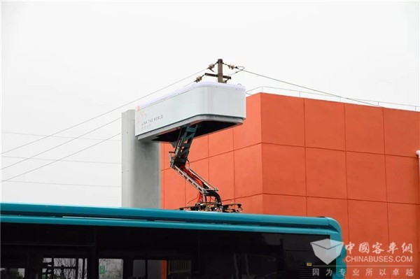 为保障新型电动车高效运营,常州公交采用了智能顶置下压式充电弓系统。相比于传统公交充电站,下压式充电弓系统布设在公交场站的候车岛上,占地面积大幅减少;采用大电流快充技术,最大充电电流达到1000A,可利用公交发车班次间隔快速补充电量,大大提高充电效率;充电操作更加智能,驾驶员只需将车辆停在指定位置,通过车载触摸屏操作即可完成整个充电过程,无需使用沉重的充电电缆和枪头进行插拔枪操作。
