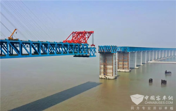 沪通长江大桥主航道钢梁架设近半