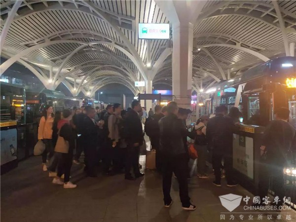 节日期间,济南公交围绕济南站、济南西站、济南东站、长途汽车站等主要交通枢纽,采取了区间车、直达车等灵活有效的调度形式,适时增加运力和班次投入,并在各大交通枢纽安排人员进行值守,维护站点登乘秩序。5月1日凌晨4:12分,G4966次列车到达济南西站,公司根据列车到达信息,提前预备加班车辆等候乘客,发放两部加班车辆疏散乘客,受到市民乘客好评。