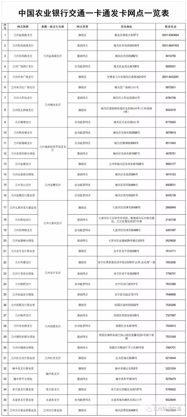 据悉,轨道交通“交通一卡通”发售卡业务自6月3日开始后,线下发售点仅限于兰州市轨道交通1号线19个车站及中国农业银行在兰州市范围内的36家网点,线上“交通一卡通”申请办理平台为“兰州轨道交通”官方微信公众号。