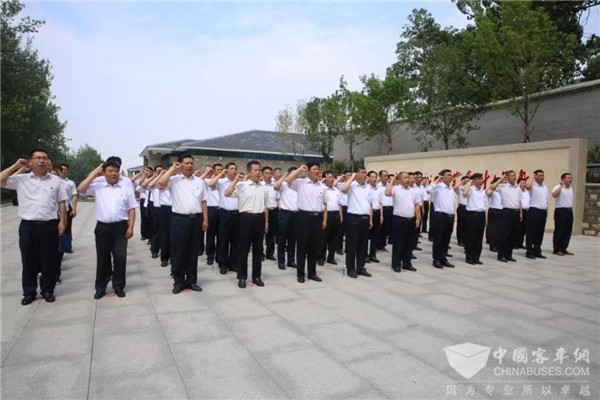 随后,全体党员来到大峰山革命烈士陵园,党委副书记石绍滕代表总公司党委向烈士纪念碑敬献花篮,全体党员向烈士纪念碑三鞠躬,表达对烈士们的哀思之情。