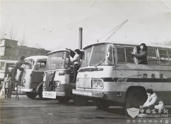 这张老照片是我的最爱,也是最值得我骄傲和幸福的。当时我正值风华正茂,是2路车的一名售票员,当时的2路车是三八线路,从驾驶员到乘务员全都是女同志,是公司树立的典型,终点在火车站广场,我所在的032车组也是路队的先进车组。这是1985年冬天的一个早晨,在火车站广场,我记得那天天气很好,我和姐妹们比赛擦玻璃,我们也最喜欢将票包斜挎子在胸前干活,那时候没有统一的工装,唯一能证明我们身份的是挂在胸前的黑色票包。每次看到这张照片,心底就会涌起阵阵甜蜜,脑海就会浮现起当时的情景,耳边也回荡着当时姐妹们爽朗的笑声。几次搬家总是第一个将她像宝贝一样带到新家,空闲的时候也总是喜欢翻看这些老照片,回忆当年的苦与甜、累与乐。
