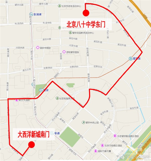 2.新开专15路。配合启阳路通车,增加启阳路地面公交线网覆盖,增加地铁15号线望京东站地面公交接驳,连接望京西部居住区与东部就业区,方便望京SOHO、望京科技园乘客接驳地铁14号线、15号线。首末站:大西洋新城南门-北京八十中学东门。中途设站:大西洋新城南门、花家地西里、南湖南路、南湖南路北口、湖光中街东口、地铁望京站、望京街西口、阜安西路、阜安路、地铁望京东站、溪阳东路东口、利泽东街东口、望京北路东口、北京八十中学东门。营业时间:大西洋新城南门5:30-22:00;北京八十中学东门5:50-22:20