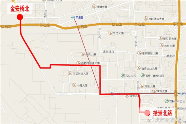 4.新开专61路。方便石景山区古城现代嘉园、拾景名苑等小区居民的出行,增加古城西路、拾景北路地面公交线网覆盖。首末站:金安桥北-拾景北路。中途设站:金安桥北、北辛安、古城西路、古城大院、石景山古城、八角、体育场西街(金安桥北→拾景北路)、体育场南路西口(拾景北路→金安桥北)、拾景北路。营业时间:金安桥北平日6:00-9:30、16:00-19:30,节假日8:30-17:00;拾景北路平日6:30-10:00、16:30-20:00,节假日9:00-17:30。