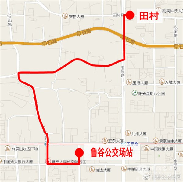9.新开专109路。完善地铁6号线田村站接驳方向,方便上庄大街、田村山南路沿线金隅瑞和园、武颐嘉园等小区乘客接驳地铁6号线田村站。首末站:鲁谷公交场站-田村。中途设站:鲁谷公交场站、鲁谷(鲁谷公交场站→田村)、地铁八宝山站、老山南路东口、金隅瑞和园、梁公庵、总参通讯干休所、田村山南路、黄家坟、阜玉路口北(鲁谷公交场站→田村)、双槐树路南口(田村→鲁谷公交场站)、双槐树路北口(田村→鲁谷公交场站)、田村。营业时间:鲁谷公交场站平日6:00-9:30、16:00-19:30,节假日8:30-17:00;田村平日6:30-10:00、16:30-20:00,节假日9:00-17:30。