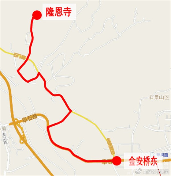 10.新开专110路。方便天翠阳光新城、京西景园等小区居民出行,接驳地铁6号线金安桥站,增加五里坨西街、石门南路、五里坨东街地面公交线网覆盖。首末站:隆恩寺-金安桥东。中途设站:隆恩寺、隆恩寺路、隆恩寺路南口、五里坨西街、石门南路、五里坨东街、黑石头、石景山高井、高井路口西、高井路口南、电厂路、麻峪、广宁村、金安桥西(金安桥东→隆恩寺)、金安桥东。营业时间:隆恩寺平日6:00-9:30、16:00-19:30,节假日8:30-17:00;金安桥东平日6:40-10:10、16:40-20:10,节假日9:10-17:40。