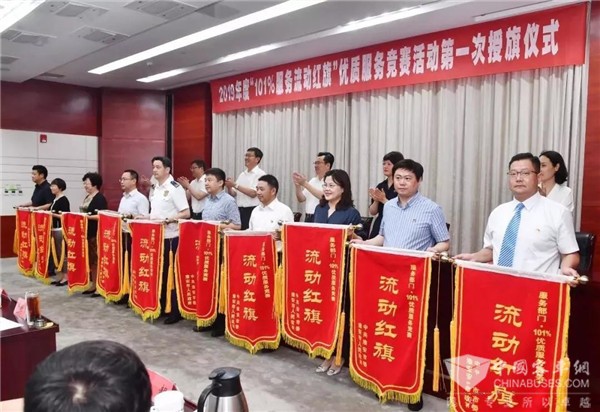 淮安公交公司从众多服务部门中脱颖而出,被授予“101%服务流动红旗”。公司党委副书记、总经理孙智敏接收“流动红旗”,并作交流发言。