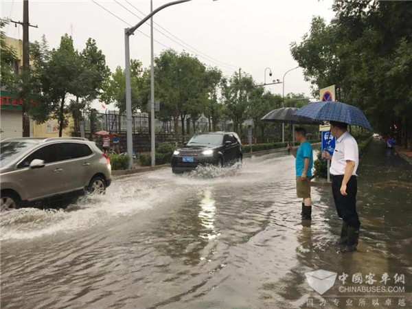 公司就安全运行工作进行了周密部署,各级管理人员立即行动起来,进站房、到站点、上线路逐一叮嘱驾驶员安全行驶,随时了解、查看各线路路面积水情况、雨中安全运行及车辆通行情况,指挥车辆安全通过。公司党委书记分别来到燕山车场、洪楼车场及龙奥公交枢纽,现场了解线路的运行情况,同时叮嘱驾驶员雨天行车注意事项,严禁盲目涉水,做到安全运行。公司线路途经的凤凰路赵家庄路段积水严重,道路临时戒严,相关车队及时启动线路绕行方案,保障市民的出行安全。