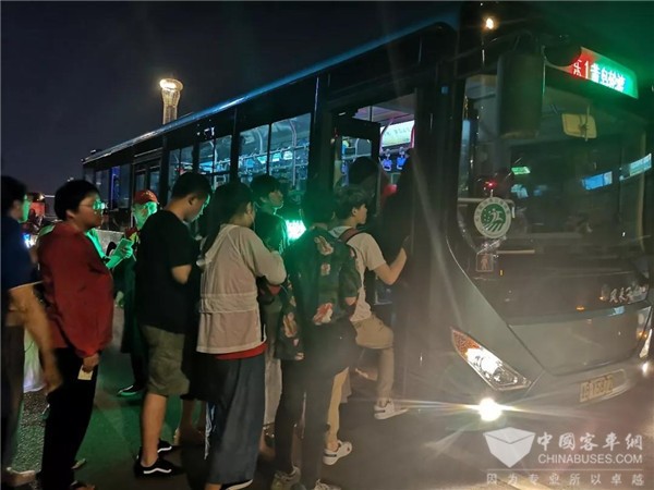 为满足音乐节观众出行需求,防止乘客滞留,真情巴士安排专人多次与“音乐之岛”工作推进办、交警部门、凤凰之声大剧院、黄发集团等单位沟通对接,掌握客流来向、售票数量、交通组织等信息,多次修订完善保障方案,最终确定:音乐节期间每日21:50—23:10临时增开啤酒城公交首末站至青岛火车站的L2路区间线路,保障青岛市区观众散场后顺利返回;优化调整K1路延伸至啤酒城公交首末站,保障西区观众观看演出;临时延长东1路、4路、18路和30路末班车时间至23:10,确保每日21:30演出结束后观众能有充裕时间换乘。在啤酒城公交首末站储备78台应急运力,通过智能调度、驻站观测等手段实时掌握客流动态,及时加密保障线路发车班次,确保对集中散场客流的及时疏散。