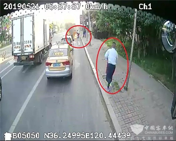 6月25日7时30分左右,京口路与滨河路路口处,暖心一幕上演:361路线驾驶员刘磊途经路口附近一处没有信号灯的斑马线,看见一位骑着电动车的母亲载着孩子正等待过马路。原本母子俩想骑车快速通过,但抬头看到远处驶来的车辆后,一时有点慌乱便停在原地等候。刘磊见此情况立即降速将公交车停了下来,鸣笛示意让孩子先过,并耐心等待过马路的行人。随后,母子俩骑车过马路。当行至马路中央时,坐在车座上的小女孩突然伸出手来对驾驶员敬了一个队礼表示感谢。刘磊也被突如其来的举动感动了,赶紧挥手向小女孩回礼。车厢前部的不少乘客也都看见了这一幕,纷纷为小女孩及刘磊点赞。