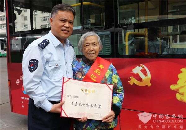 90多岁的“让座奶奶”薛轶雯成为年龄最长的“青岛巴士荣誉乘客”。