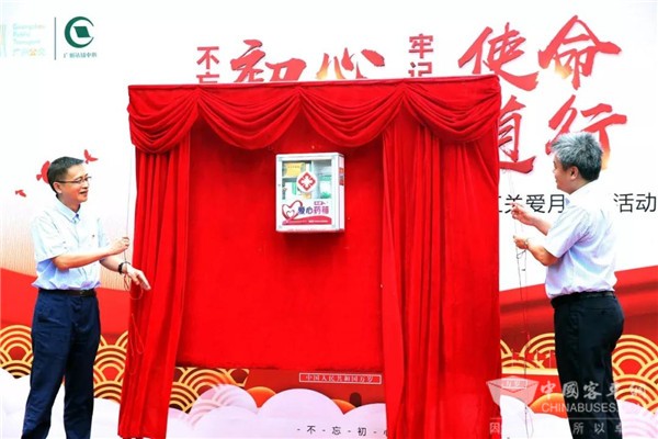 活动的第二个环节是由公交站场管理公司及白云山中一药业有限公司相关领导为共建公益爱心药箱正式上线揭幕。