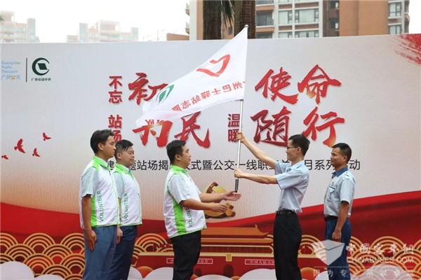 活动的第三个环节是由公交站场管理公司领导为“广州巴士驿站志愿服务队”授旗仪式、志愿服务队代表作服务承诺。