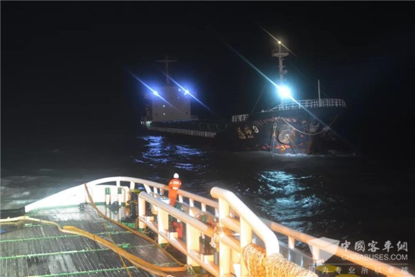 东海救助局接到救助险情信息后,立即启动应急救助预案,调派在长江口水域待命的“东海救101”轮前往救援。8日21时,“东海救101”轮抵达现场,救助船员们顶着大雨成功完成带缆作业。