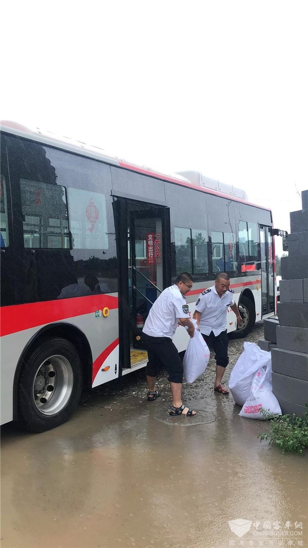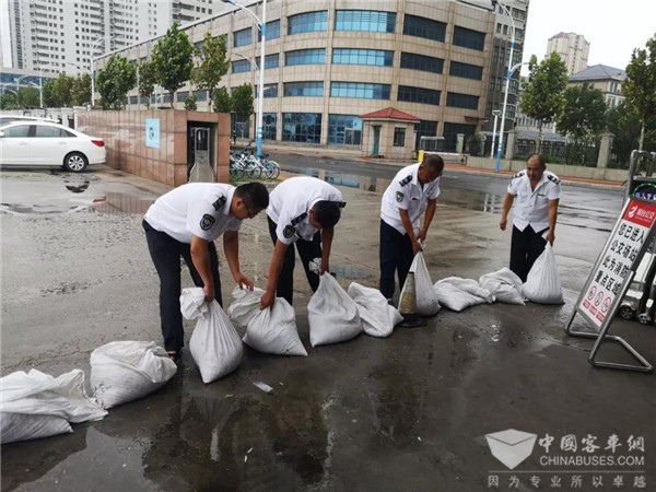 公交场站准备防汛沙袋