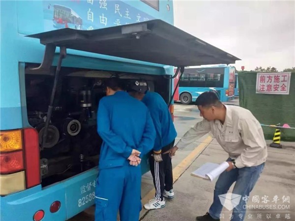 8月29日,集团公司维修分公司马山机务站小修杭少峰和周平两位同志在机务专员的带领下,对马山营运部所有营运车辆进行了一遍大检查。检查临近中午时分,一名89路驾驶员找到杭少峰说,车辆水温高。杭少峰立即指挥车辆倒上地沟,打开后舱盖进行细致的检查,原来是水管老化,出现裂缝引起渗水,导致冷却液缺少使发动机水温升高。为了不耽误下一圈的运营,杭少峰冒着发动机舱的高温,快速更换老化水管,加注冷却液,起动检查,在车辆发车前完成了维修和检查工作。这时他已汗流浃背,但看着维修好的车辆正常发车,他露出了欣慰的笑容。